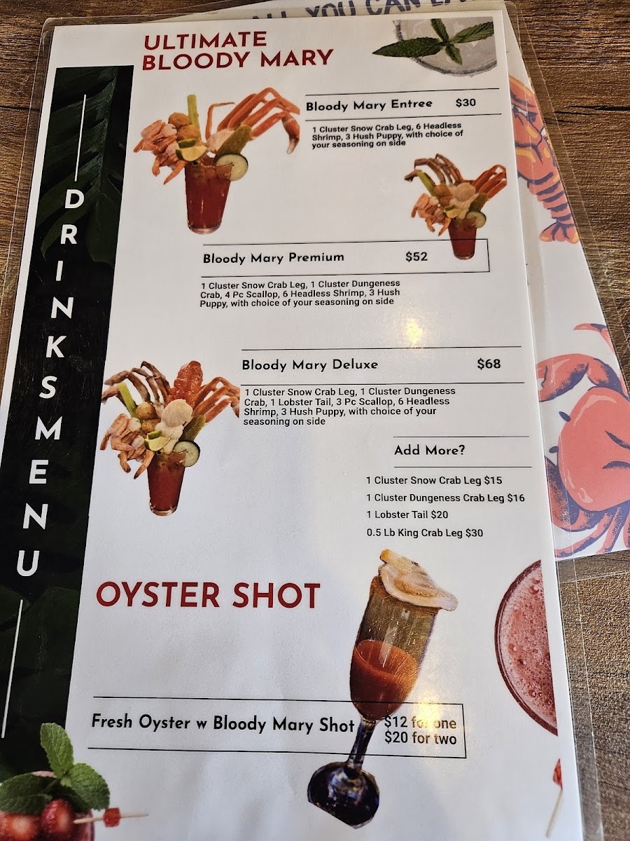 Accompany your tacos with mouthwatering sides like Cajun Corn On The Cob and Sweet Potato Fries, or savor a bowl of rich Lobster Bisque. The standout feature is the all-you-can-eat deal, perfect for seafood lovers, showcasing everything from steaming oysters to snow crab legs.